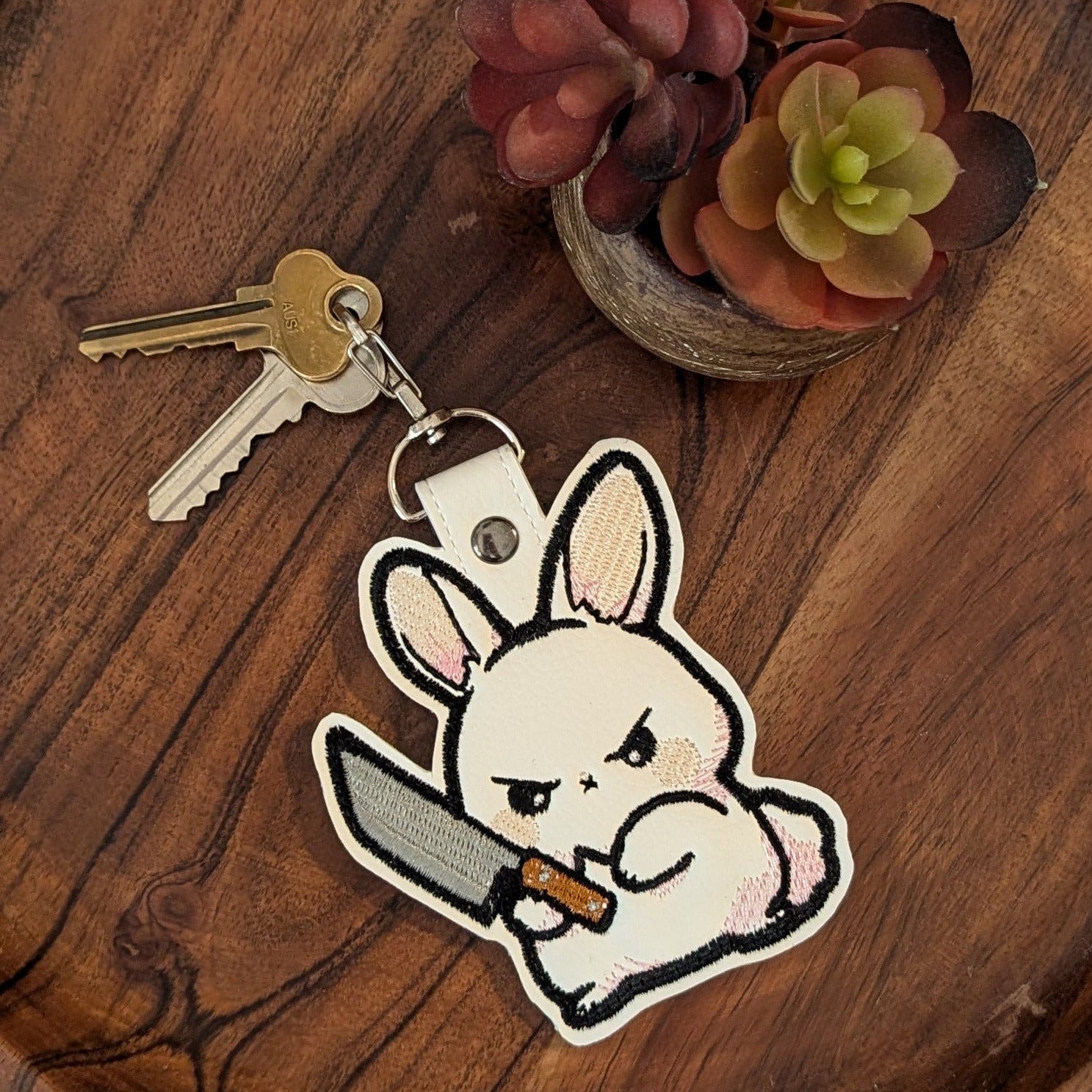 Murder Bunny Keyring – Faux Leather Embroidered Design