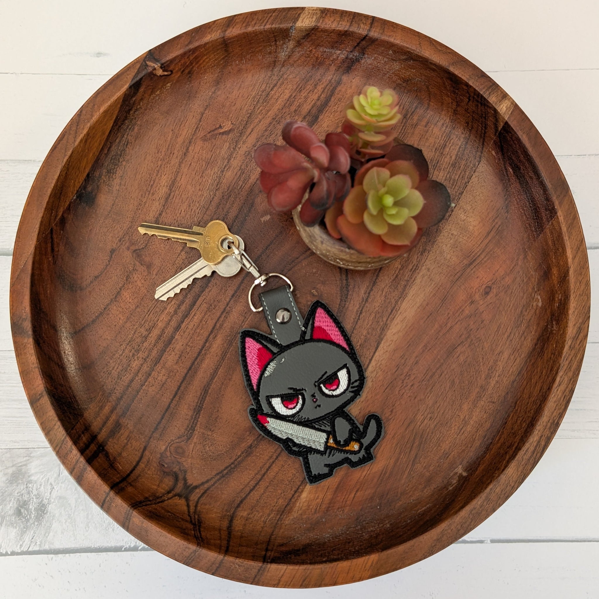 Murder Kitty Keyring – Faux Leather Embroidered Design